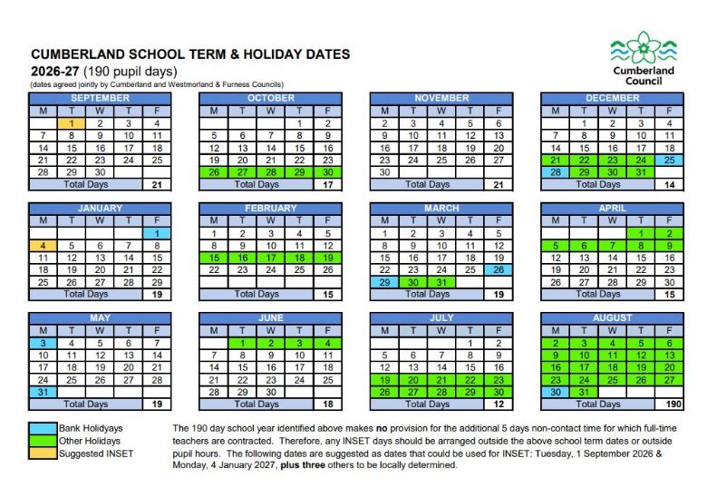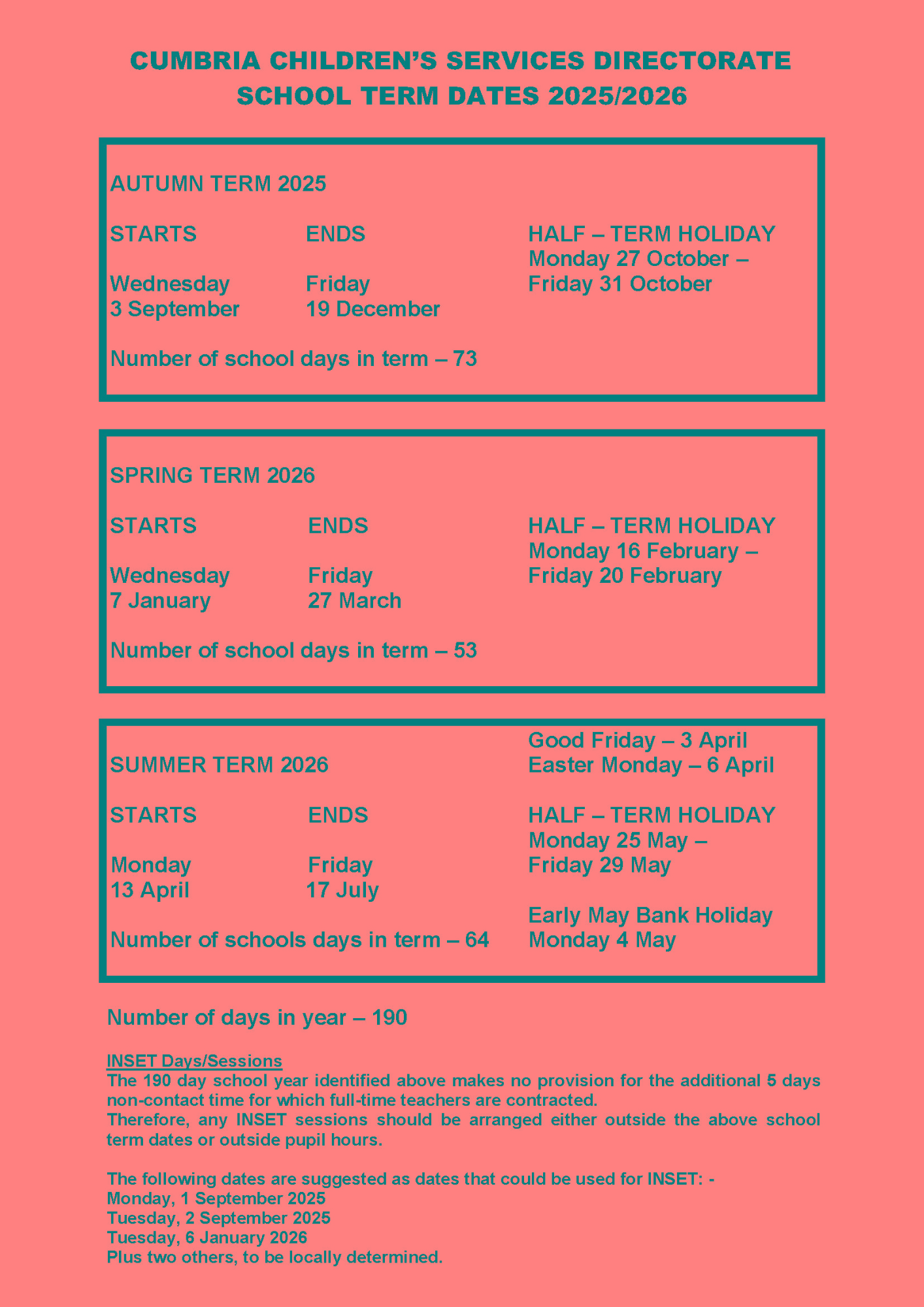 The term dates for Cumberland Schools can be accessed using the link below. They are also available to download.